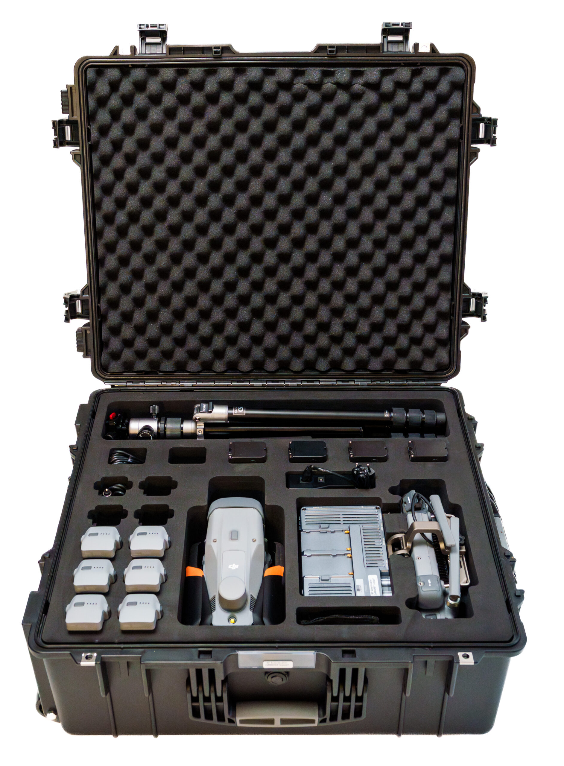 Le Faunadrone peut être piloté par une seule personne. Il est compact et tout tient dans une seule valise. Toutes les batteries peuvent être rechargées dans la valise. Le drone est pratique, léger, complet et prêt à l’emploi. Tout fonctionne sur la batterie du drone, de sorte que même la télécommande et le second écran ultra-lumineux n’ont pas besoin d’être rechargés séparément. Six batteries sont incluses en standard, pour une durée de vol totale de 4 heures. Un trépied de haute qualité est également fourni pour faciliter le contrôle du logiciel, du drone et des caméras sur le terrain.